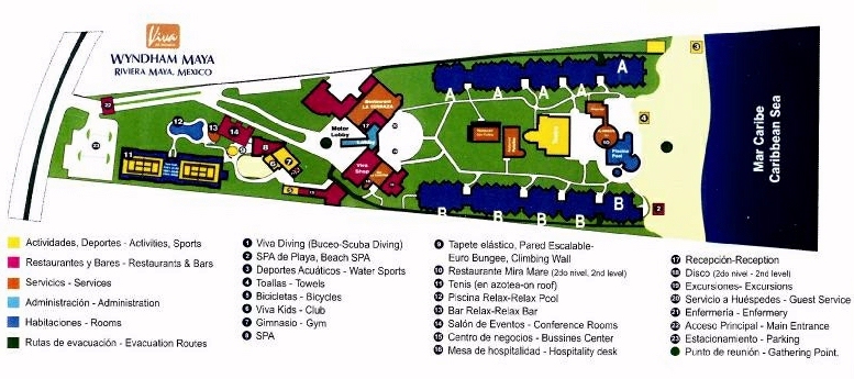 Viva Wyndham Maya houses 400 rooms, each featuring colonial-inspired decorative accents with two queen sized beds, A/C, satellite TV, hair dryer, & balcony/terrace.